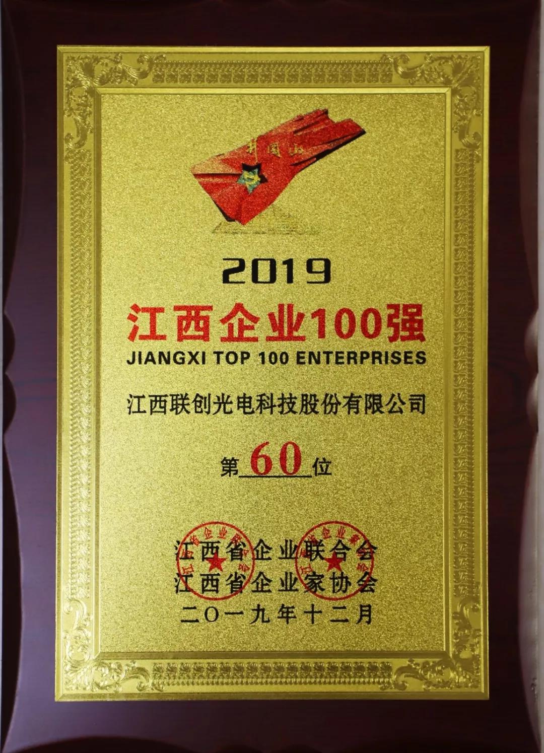 聯(lián)創(chuàng)光電入選2019江西企業(yè)100強榜單