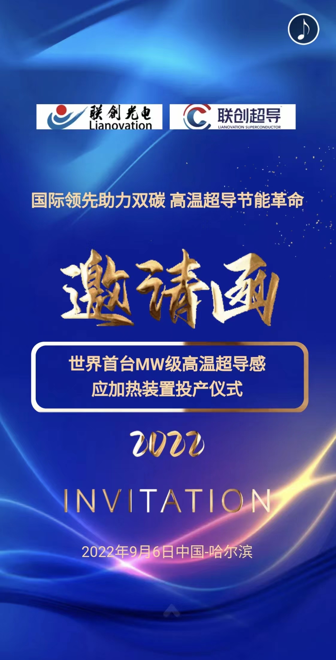 十年磨一劍,一朝試鋒芒!聯(lián)創(chuàng)高溫超導(dǎo)歷經(jīng)近十年的科技長(zhǎng)投,傾心打造的高溫超導(dǎo)感應(yīng)加熱設(shè)備,超導(dǎo)設(shè)備于今年3月完成驗(yàn)收,聯(lián)創(chuàng)高溫超導(dǎo)即將開(kāi)啟商用的新征程。我們?cè)谇笳鎰?chuàng)新、產(chǎn)業(yè)報(bào)國(guó)的道路上,離不開(kāi)諸位的鼎力協(xié)助,為感謝諸位對(duì)聯(lián)創(chuàng)超導(dǎo)的信任與支持,公司將于2022年9月6日在哈爾濱舉辦“MW級(jí)高溫超導(dǎo)感應(yīng)加熱裝置投產(chǎn)儀式”。屆時(shí)特邀嘉賓、行業(yè)專家、公司高管將介紹設(shè)備作業(yè)情況及公司高溫超導(dǎo)設(shè)備的發(fā)展戰(zhàn)略,這將是高溫超導(dǎo)近期最受矚目的重要盛會(huì)。為此,我們誠(chéng)摯邀請(qǐng)您來(lái)參與我們的盛會(huì)!
