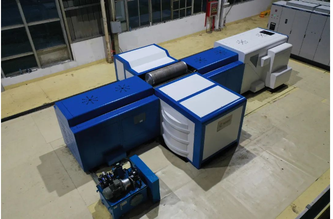 戴少濤告訴記者:“設備的加熱技術是全球唯一能對400毫米以上大口徑金屬工件進行芯表同步超均勻快速加熱的方法。相對于國際上幾百千瓦級的水平,‘兆瓦級’好比汽車發(fā)動機排量從零點幾到了2.0,應用空間一下打開了。”