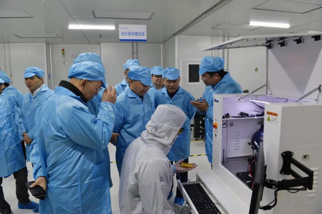 揭牌儀式后,各級(jí)領(lǐng)導(dǎo)前往中久光電產(chǎn)線(xiàn)參觀(guān),實(shí)地考察了激光器產(chǎn)品的生產(chǎn)工藝及加工生產(chǎn)線(xiàn)。